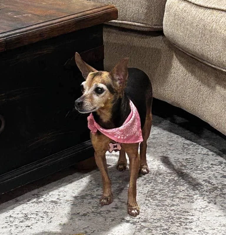 My sweet 14 year old Chihuahua/Mini Pinscher, Chanel.